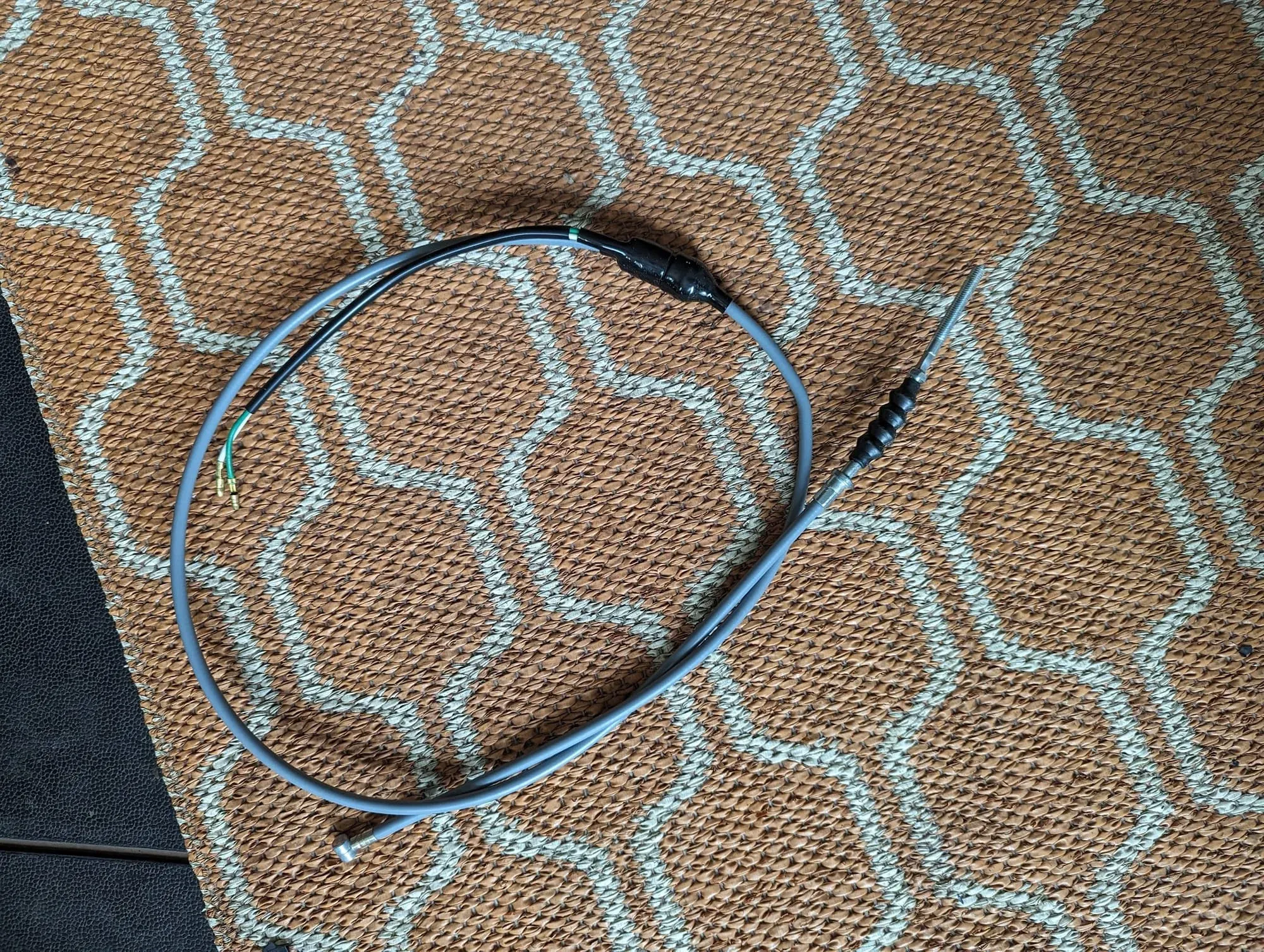 The cable includes a mechanical switch that - when the lever is pulled - connects the two attached wires and this connects the black wire and green/yellow wire in the harness thereby activating the brake light. Replacements for the one-year-only cable design can be purchased from Mel Bashor (search for him int the Facebook CT group).