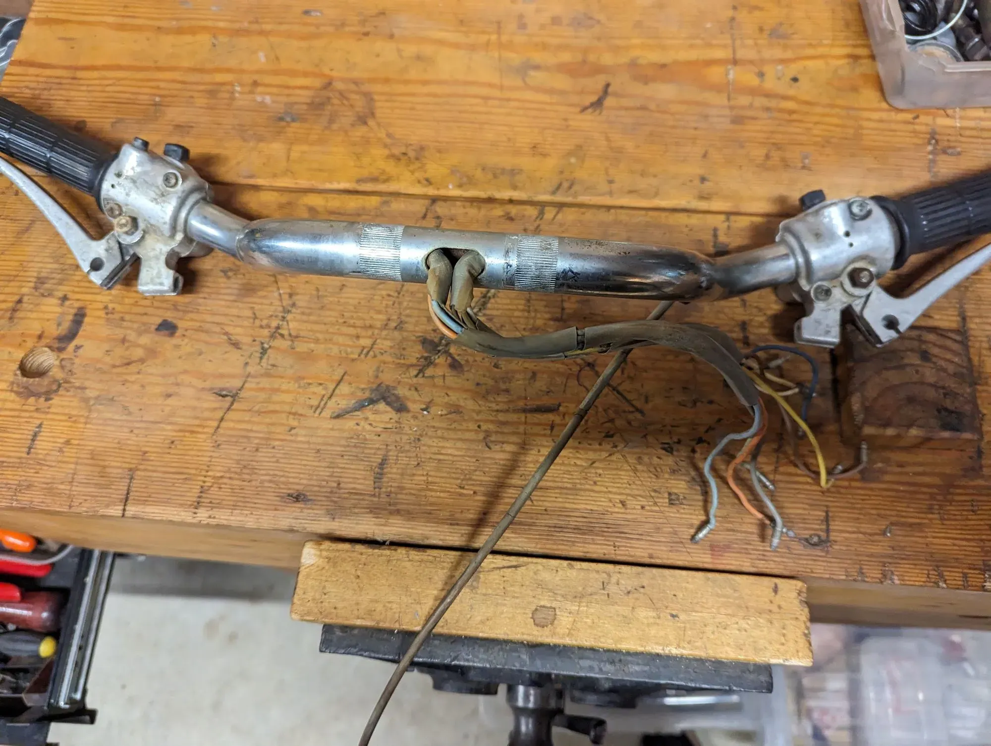 The grey sheathing Honda used gets very brittle over time and this, combined with the sharp edges around the hole in the handlebars that accommodates them, is a weak spot that can result in damage to the wire insulation and consequent short circuits. Unfortunately the only fix is to dismantle, make repairs and reinstall with new sheathing.